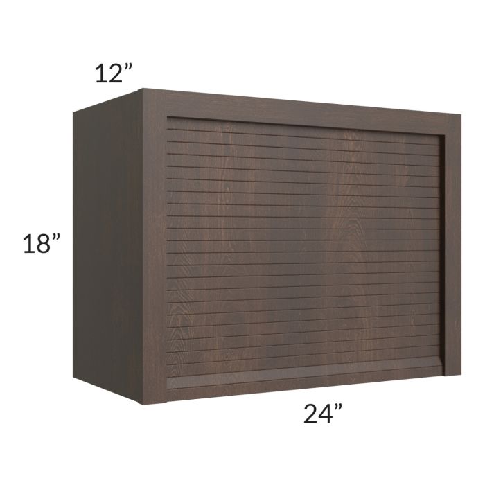 Appliance garage with a roll up, tambour door and is designed to fit under a 24" wide wall cabinet.