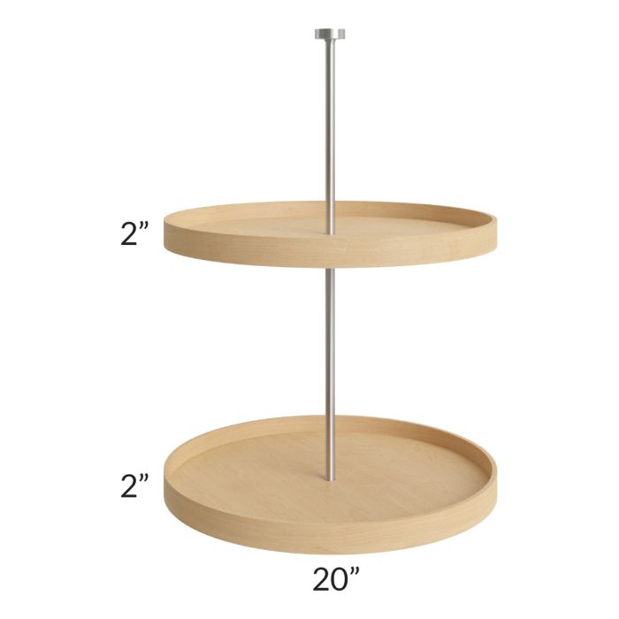 Lazy susan accessory for a 27x30 diagonal wall cabinet. It will have an adjustable metal post and two 20" wood trays. Trays will be 2" high. ***This item should be installed prior to shipment so please specify which cabinet to install this item in under the order comments when checking out or it will ship loose.***