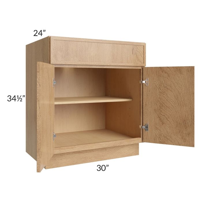 2 door base cabinet with 1 three quarter depth adjustable shelf and 1 drawer.