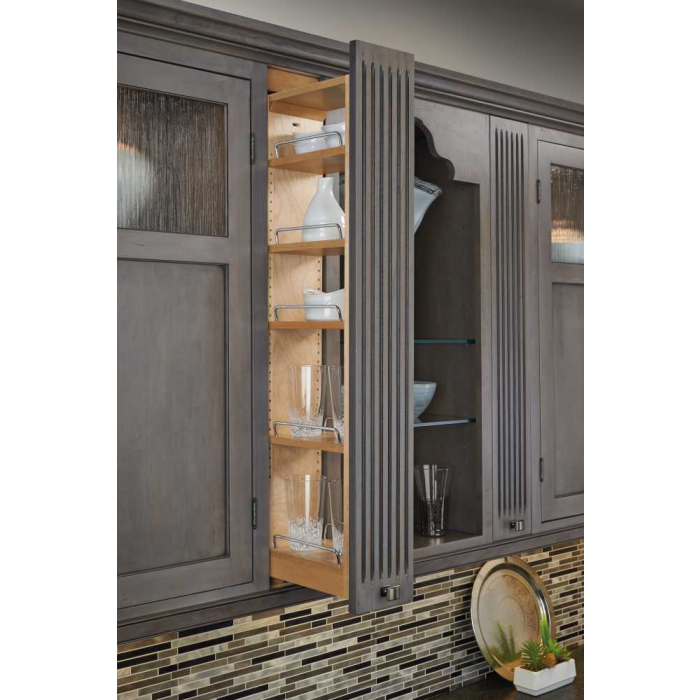 Create a functional storage space behind regular or decorative fillers with our wall filler cabinet. Features adjustable shelves with chrome rails. The unit glides effortlessly on full-extension ball bearing slides. **Filler must be ordered separately**